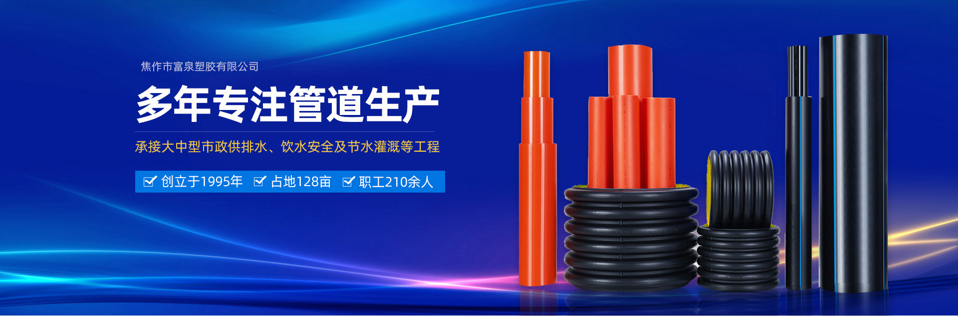-   焦作市富泉塑膠有限公司,創(chuàng)立于1995年,是一家集研發(fā)、設計、生產、銷售為一體的大型管材企業(yè)。公司位于太極故里、黃河之濱一一河南焦作溫縣。公司占地128畝,現有職工210余人,其中具有中技術職稱的19人。生產、檢驗設備58臺(套),包括PVC實壁管生產線11套、PE實壁管生產線12套、HDPE雙壁波紋管生產線6套、PVC雙壁波紋管生產線5套,檢驗設備14臺(套)。主要產品有:Φ20mm-630mm、各種壓力規(guī)格的PVCU、PVC-M、PE給水管材,PVC-U節(jié)水灌溉管材,HDPE燃氣和礦用管材,DN200-800mm的HDPE、PVC雙壁波紋管及各種噴灌、滴灌工程材料。承接大中型市政供排水、飲水安全及節(jié)水灌溉等工程?! 「蝗苣z公司重視產品的質量、安全、環(huán)保和節(jié)能,在同行業(yè)中率先完成了“新華節(jié)水產品認證”,全方面通過ISO9001:2008國際質量管理體系、IS014001:2004環(huán)境管理體系和OHSAS18001職業(yè)健康安全管理體系的一體化導入,并建立起規(guī)范的現代企業(yè)管理體系。公司以“質量”為先導,采用質量跟蹤、多環(huán)節(jié)把關的方法,組建具有行業(yè)水準的企業(yè)技術檢測中心,常年委托水利部節(jié)水灌溉設備檢測中心、河南省產品質量監(jiān)督檢驗院對產品跟蹤檢測,并由中國人民保險公司承保產品質量。公司連續(xù)多年被河南省水利廳確定為“安全飲水設備、節(jié)水灌溉設備”定點生產企業(yè),并獲得“中國名優(yōu)產品”“質量、服務、信譽AAA企業(yè)”“河南省**產品”“河南省水利企業(yè)”“河南省守合同、重信用企業(yè)”等榮譽稱號?! 「蝗苣z公司堅持“用戶為上”的服務理念,長期以來,全方面關注客戶價值,不斷提升服務水平。服務隊伍常年為客戶的產品設計、施工、安裝提供合理的方案和全程細致、周到、**、快捷的技術服務。公司自成立以來,一直堅持以人為本的宗旨,塑造企業(yè)形象,并致力于新產品的開發(fā),憑借雄厚的技術開發(fā)能力,先進的工藝制造流程,嚴格的質量管理保證體系,優(yōu)良的售后服務網絡,已成為河南省大的飲水、灌溉及排水管材設備制造商。產品暢銷全國,而且還以公司雄厚的綜合實力在業(yè)界中占據著重要的地位。